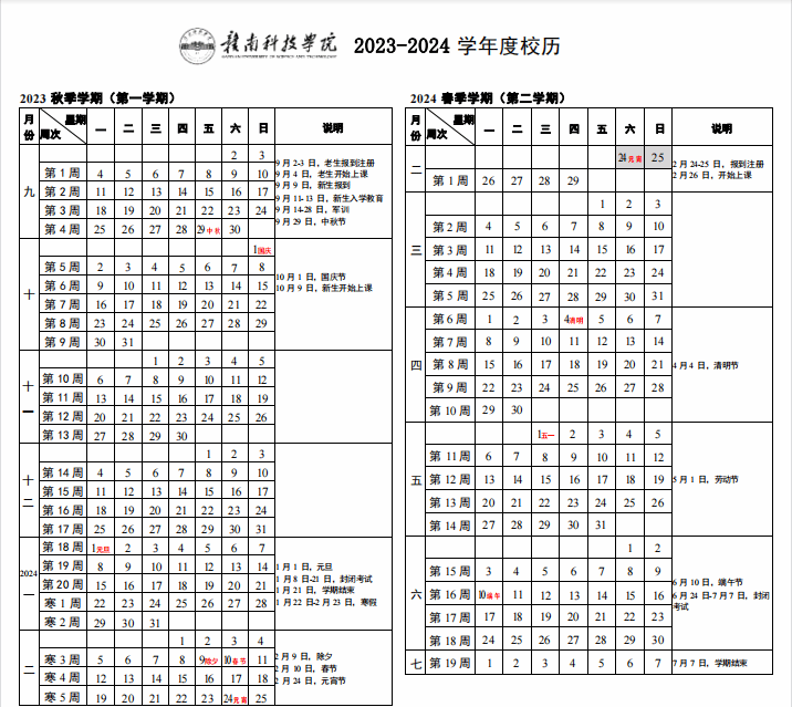 澳门十大网投正规官网平台2023-2024学年度校历