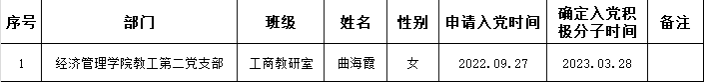 经党组织一年的培养考察,曲海霞同志被列为发展对象。为了进一步增强发展党员工作的透明度,加强对发展党员工作的民主监督,保证新发展党员的质量,现将曲海霞同志的有关情况公示如下: