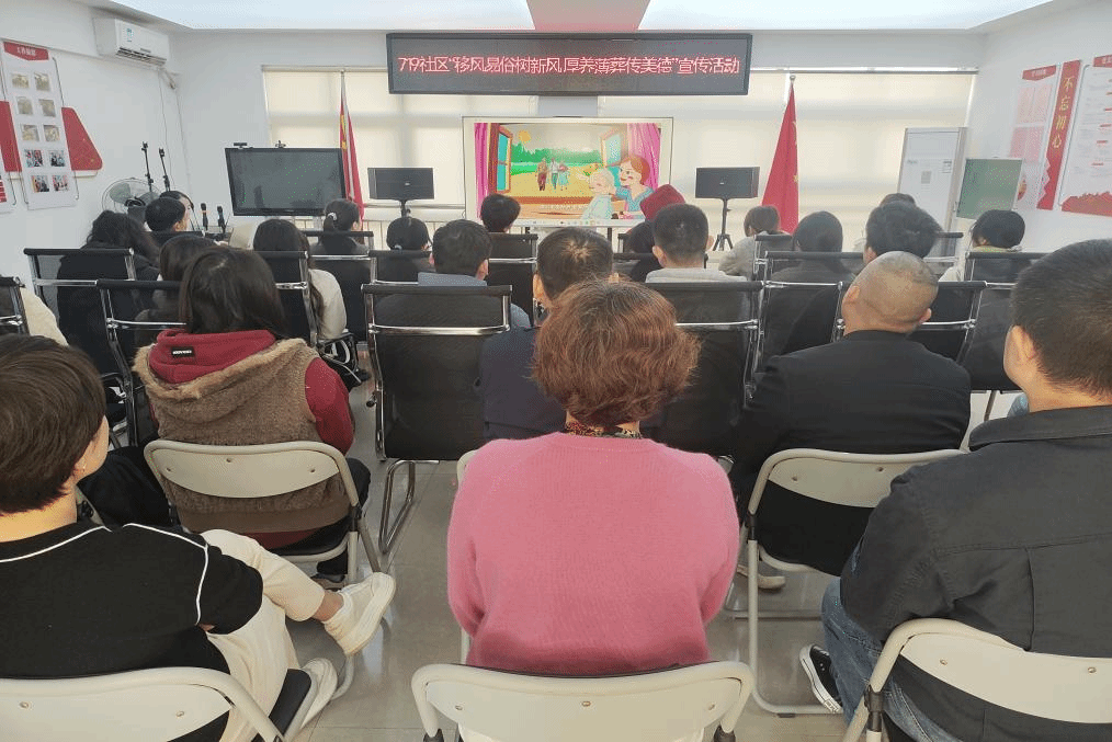 随后,学生党员们为居民播放“移风易俗树新风,厚养薄葬传美德”宣传视频,倡导居民摒弃陈规陋习,树立文明新风,传承中华民族传统美德。