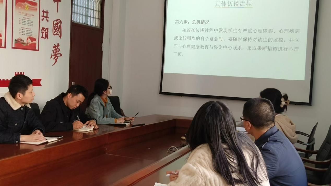 本网讯:为进一步加强我校学生心理健康教育工作,提升辅导员在学生心理问题识别与干预方面的专业能力,11月29日,澳门十大网投正规官网于 2教309成功举办了辅导员心理访谈培训,学院党委委员梁文学老师以及全体辅导员出席本次活动。此次培训旨在通过系统学习与实践演练,使辅导员们能够更好地走进学生内心世界,为学生的心理健康保驾护航。