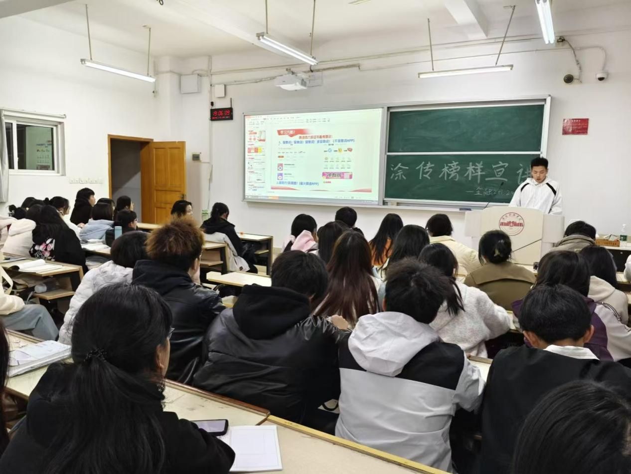 宣讲中涂传同学分别从学业、学科竞赛、科创、社会实践以及考研择校五方面向学弟学妹们传授了经验。首先以课程学习为主题宣讲的出发点,围绕"怎样学好课”这一问题,结合自身经历,指明了课程学习对未来规划的重大意义,强调了数学学习的重要性,推荐出了一系列有助于学习的软件平台并分享相关学习资源。然后涂传同学呼吁大家积极参与竞赛等社交活动,提高自身社会交往能力。最后从人生规划角度,涂传同学分享了自身经验,点明了考证、考英语四六级对个体发展的重大作用以及相关注意事项,并在此基础上结合社会现状,指出提高自身学历,练就过硬本领的必要性。