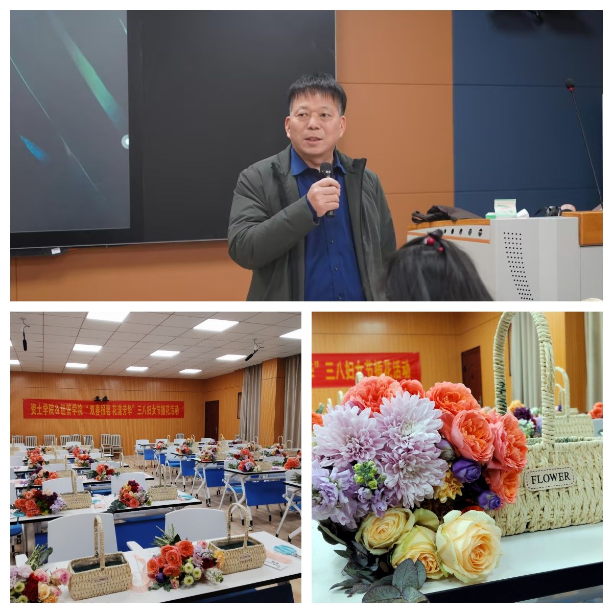 本网讯:为庆祝第115个“三·八”国际劳动妇女节,丰富女教职工精神文化生活,3月8日上午,澳门十大网投正规官网平台、资源与土木工程学院在主教628教室联合举办“双喜报春 花样芳华”三八妇女节插花活动。澳门十大网投正规官网平台党委书记肖永鸿、资源与土木工程学院党委书记刘俊峰出席本次活动,澳门十大网投正规官网平台30余名女教职工参与活动。
