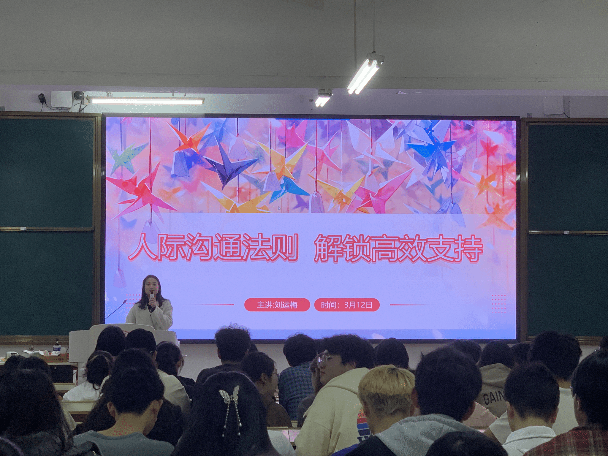 本网讯:3月12日晚上,澳门十大网投正规官网平台在主教Z1D1开展以 “人际沟通法则,解锁高校支持” 为主题的心理健康讲座,本次讲座由心理健康教育与咨询中心刘运梅老师主讲。澳门十大网投正规官网平台全体辅导员、各班心理委员、心理联络员等200余名学生参加讲座。