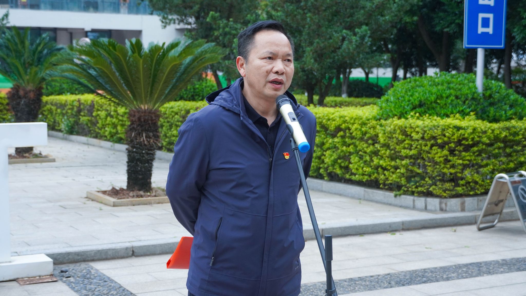升旗仪式在庄严的国歌声中开始。国旗护卫队护送五星红旗冉冉升起,全体师生肃立注目。随后,四名学生代表齐唱迎评歌,歌声清脆、饱含深情,以真挚情感传递积极奋进的态度,诠释了经管学子在迎评促建工作中的担当。学生代表会计243班何丹随后进行发言,她呼吁同学们要以本科教学工作合格评估为契机,严于律己,提升学风,用勤奋、诚信和创新的精神面貌,诠释赣科学子的责任与担当,为学校发展贡献力量。