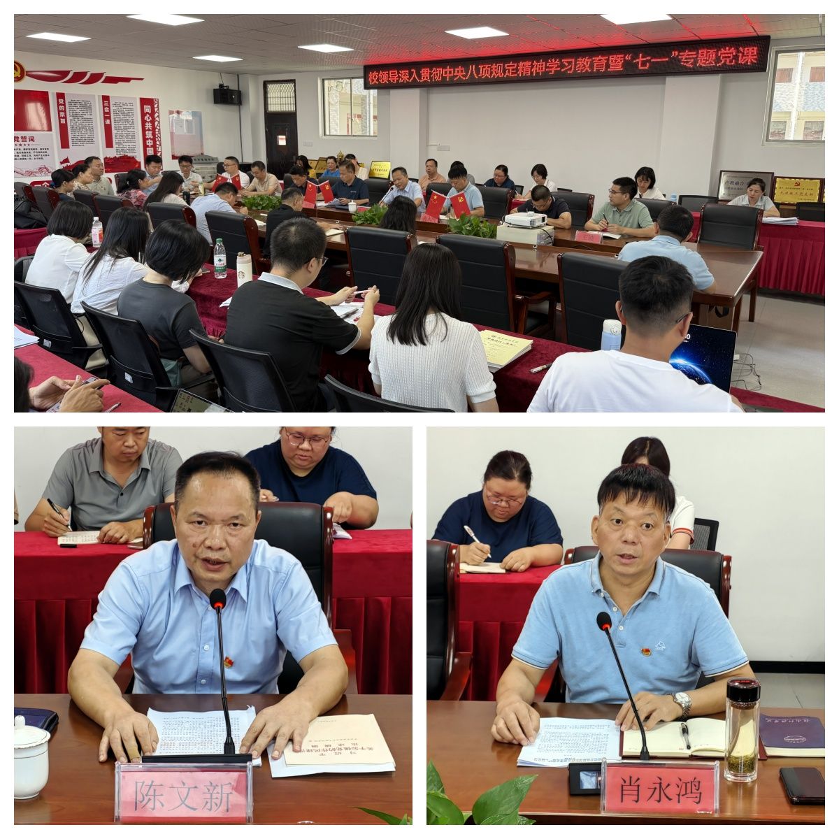 陈文新围绕中央八项规定和中央八项规定精神核心要义、深刻领会习近平总书记关于加强党的作风建设的重要论述、学好用好贯彻落实中央八项规定精神的成效和经验、深刻认识违反中央八项规定精神的危害以及加强整改整治,以优良作风推动学校高质量发展等五个方面进行深入阐述和系统讲解。他强调,一是要聚焦问题深查实改,持续强化整改整治。对照中央八项规定精神,深入查找落实中央八项规定及其实施细则精神方面存在的突出问题。通过各方面整治整改,学校将站在新起点,迈向新征程。二是要正视学校干部作风存在问题。进一步健全激励干部担当作为的机制,有力落实干部监督提醒问责制度,切实提高干部能力本领。三是要以优良作风推动学校高质量发展。通过加强顶层设计、优化体制机制,强化政治引领、增强政治意识,加强业务培训、提高能力本领,强化多措并举、激励干部担当作为,加强监督问责、提升警示效果以及强化整改整治、巩固政治生态等措施,构建风清气正的校园政治生态,以推动学校事业高质量发展。