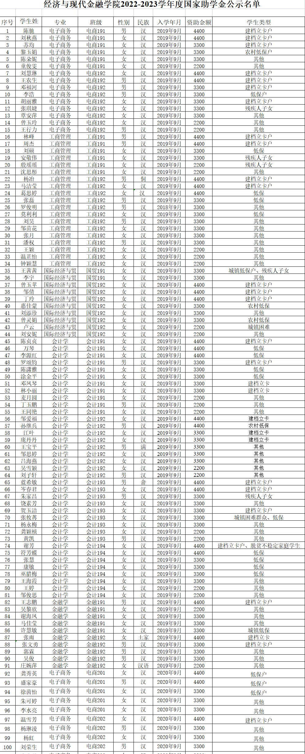 根据《澳门十大网投正规官网平台本科生国家助学金评审实施办法》及学工《关于开展我校 2022 年国家助学金评定工作的通知》(〔2022〕27号)等有关文件精神,经学生个人申请、班级评议小组评议、系评审领导小组综合考察,集体确定2022-2023学年度澳门十大网投正规官网国家助学金初评人选,现将名单予以公示。