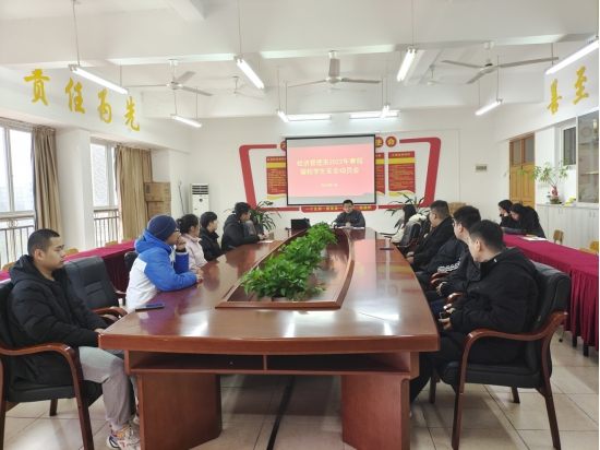 1月17日上午,经济管理系在系会议室召开了经济管理系寒假留校学生安全动员会,经济管理系副主任梁文学、全体辅导员、留校学生参加了会议,会议由梁文学主持。