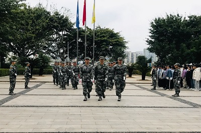 本网讯:为引导和激励我系同学大力弘扬爱国主义精神,从第十周至第十四周每周一早上,经济管理系在崇善楼前隆重举行“向国旗敬礼——青春致敬祖国”升旗仪式活动。经济管理系团总支书记王博文以及经管系20级全体学生参加了此次升旗仪式活动。