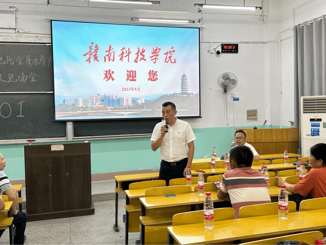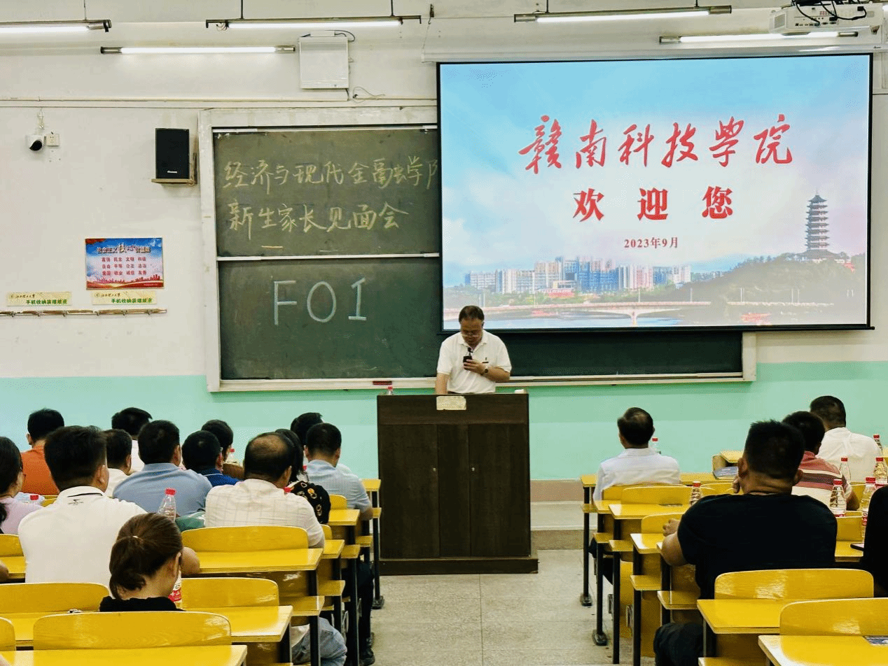 本网讯:为促进家校联动,充分发挥家校教育合力,9月8日晚上,经济与现代金融学院在龙飞主楼F01教室召开2023级新生家长见面会。学校党委副书记、校长李国金,过渡期管理委员会委员薛香恒,经济与现代金融学院临时负责人钟滨,学院教学负责人王波及各教研室主任出席了本次会议。会议由学院学工负责人梁文学主持。