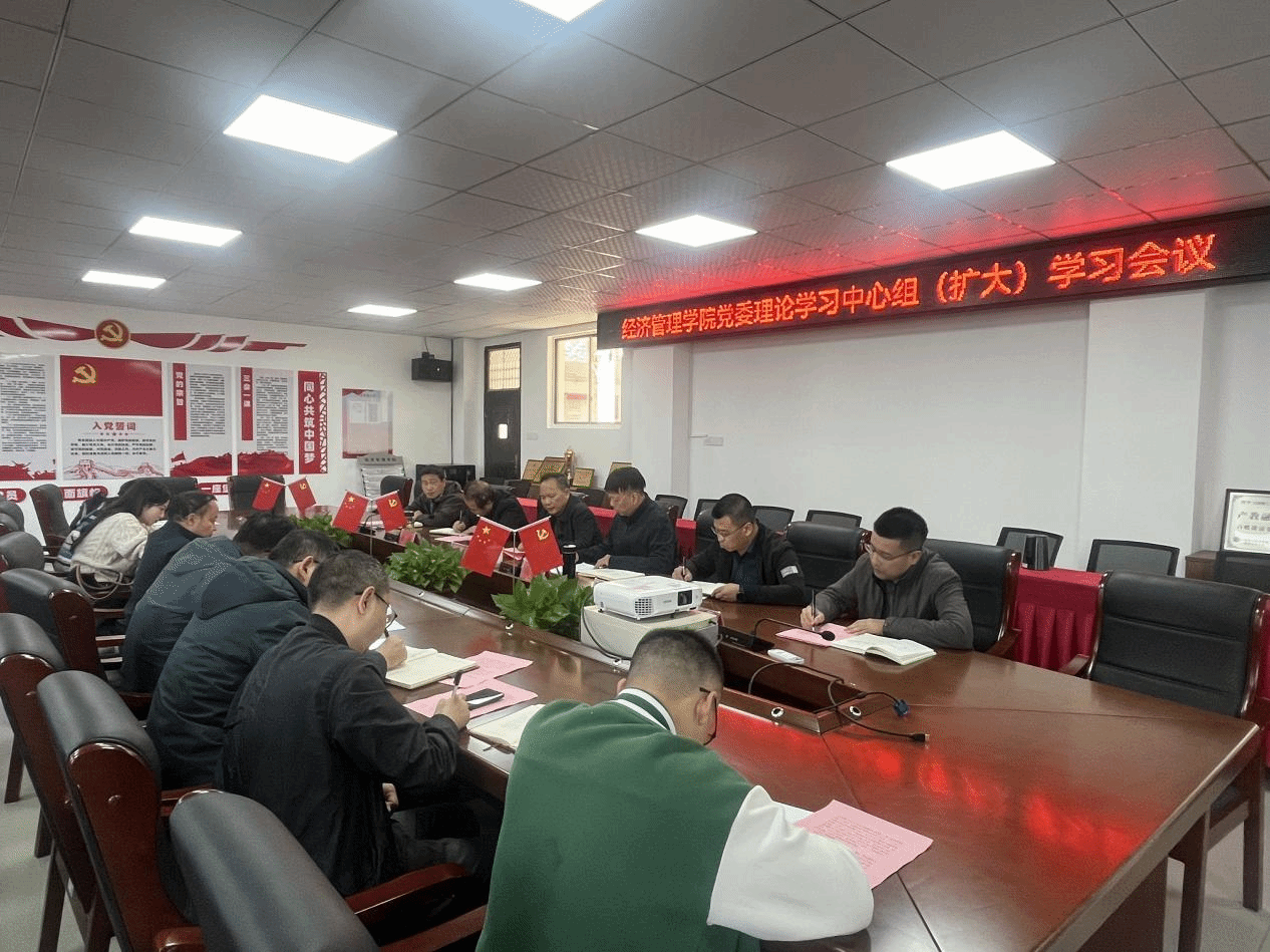 本网讯:11月25日下午,澳门十大网投正规官网平台在新民楼305党员活动室召开党委理论学习中心组(扩大)学习会议,深入学习贯彻党的二十届四中全会精神。学院党委书记肖永鸿主持并讲话,学院党委委员、副院长钟滨,学院党委委员梁文学、葛志财、王波参加会议,结合学习内容与分管工作依次开展研讨交流。学校党委委员、纪委书记陈文新到会旁听指导,各党支部书记、教研室主任列席会议。