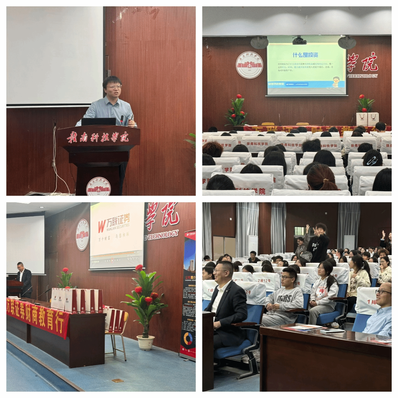 讲座伊始,郑延智对万联证券的到来致以热烈的欢迎。万联证券赣州营业部负责人陈鹏详细介绍了万联证券概况,包括公司的发展历程、业务范围、核心优势等方面。接着,万联证券资深投资顾问邓超做题为“股权投资黄金时代到来”的讲话,分别从世界经济格局、货币宽松与资产再定价、走向股权投资时代三个方面展开,这为金融专业的学子们打开了新视野,让学生了解到宏观经济下股权投资的趋势,对学生未来职业规划具有重要意义。本次活动除讲述金融知识外,万联证券公司还为学生们普及了反洗钱有关知识,极大地提高学生的反洗钱意识。