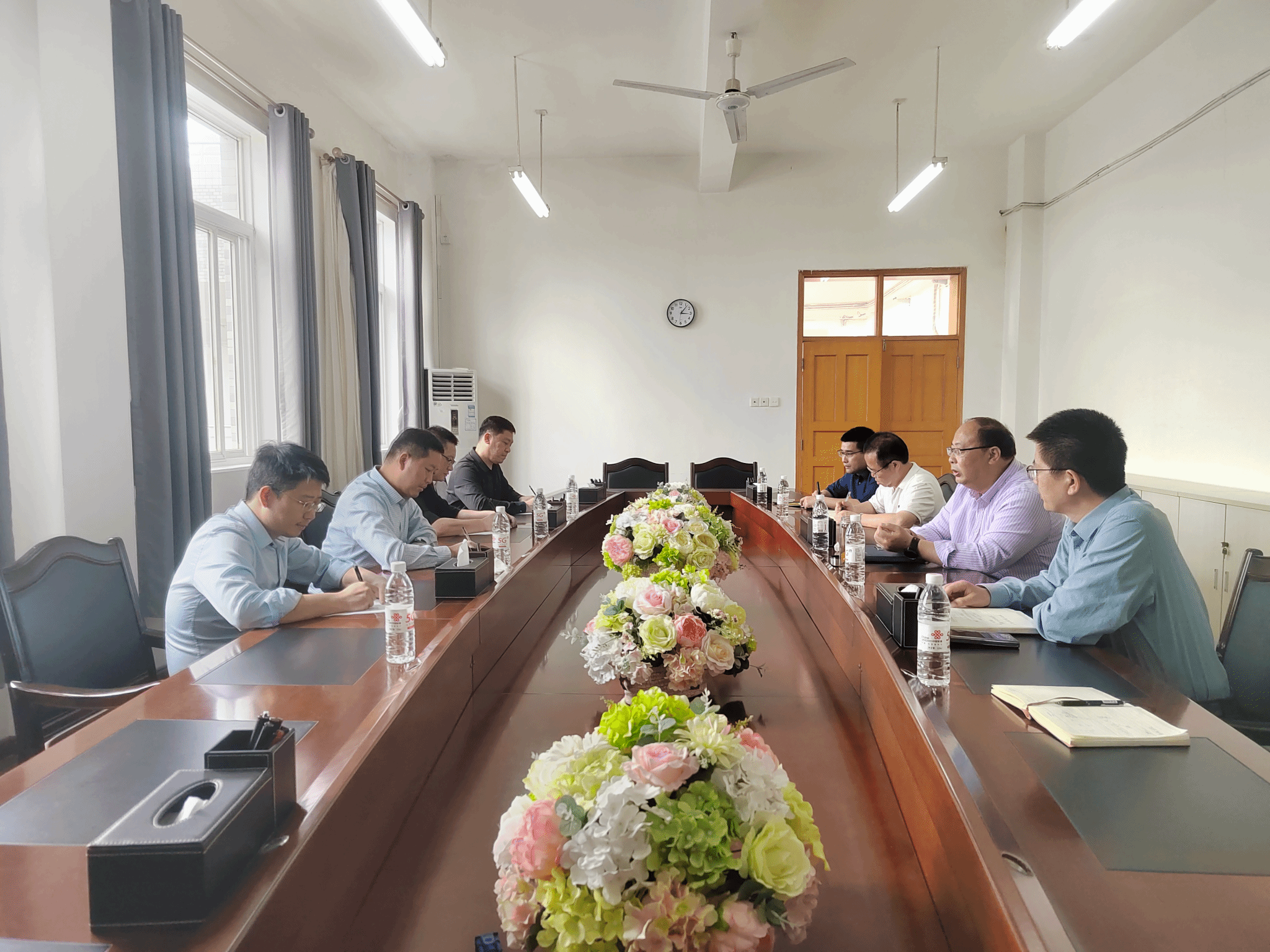 邵百强简要介绍了中国人寿赣州分公司的发展历程、业务领域以及公司围绕服务国家战略、参与社会治理所取得的成效。并指出此次来访,旨在强化校企合作互动,在实践教学基地建设、保险业务培训、人才培养等方面深化合作,推动校企双向赋能。接着与会人员围绕实习实训基地建设、教师实践培训、学生实习和就业、学术研究和合作等事项进行了深入座谈交流。