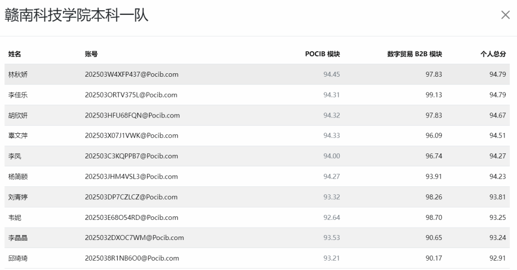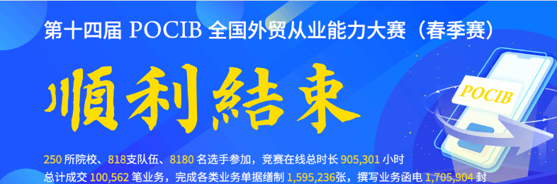 本次大赛新增FAS、DAP、DPU三种贸易术语和RCEP原产地证书的相关内容,从POCIB国际贸易从业技能综合实训和数字贸易B2B两大模块进行综合考核。POCIB国际贸易从业技能综合实训模块中,要求每位参赛选手作为独立的进出口企业开展国际贸易,主要考察英文函电磋商、贸易术语与结算方式的运用、商品价格核算、成本控制、扩大利润的方法以及进出口贸易单据的制作等方面内容。数字贸易B2B模块中,要求每位选手在数字贸易B2B电商平台中进行店铺入驻、商品发布、交易磋商、起草订单、订单履约和营销活动等跨境电商外贸环节中的各项业务流程操作。我校学子自3月报名以来,在指导老师的带领下积极备赛、开展研讨,最终突破历史成绩、实现全员大满贯。根据 “所在参赛团队获得团体奖项且个人POCIB模块成绩85分(含)以上”的相关规定,所有参赛学生均可获得由“中国国际贸易学会”出具的“POCIB国际贸易从业技能综合实训成绩合格证明”。